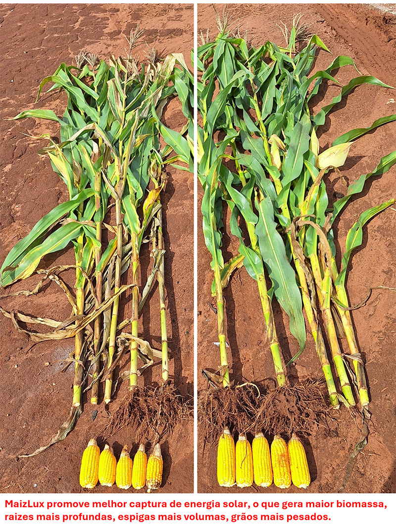 Maior rendimento, caracterizado por espigas de maior volume, mais uniformes e com grãos mais pesados. Além de elevar o rendimento, as plantas tratadas suportam melhor os veranicos por apresentarem maior volume radicular e mostram maior biomassa para a sucessão.